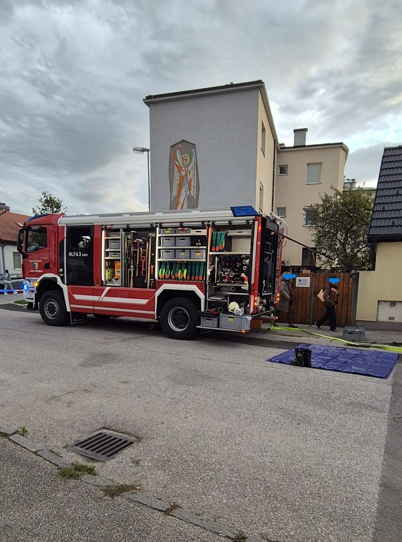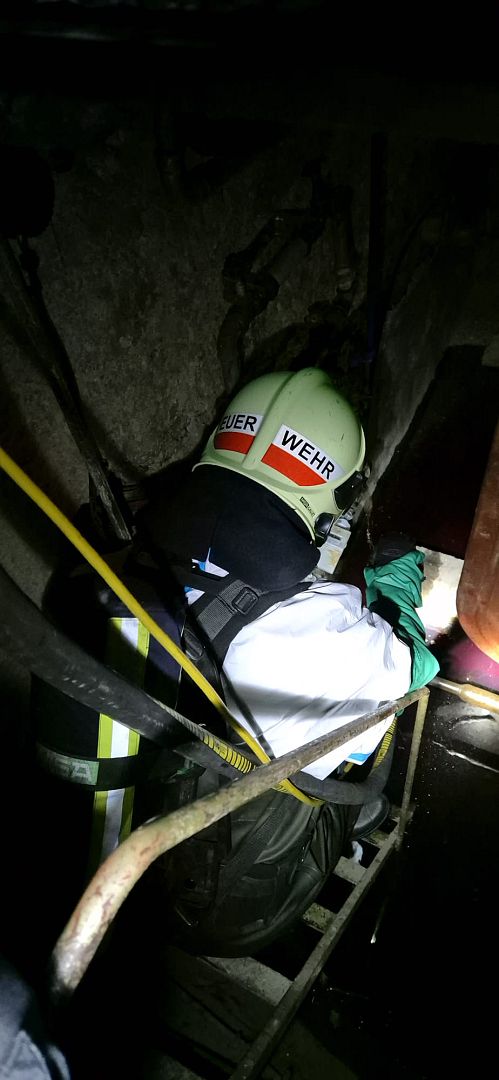 Nach einer ersten Erkundung vor Ort wurde die Feuerwehr Neunkirchen mit dem Gefährliche Stoffe-Fahrzeug nachalarmiert. Da der Tank nicht abgedichtet werden konnte, wurde das Heizöl in geeignete Behälter umgepumpt.